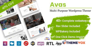 Avas is a multi purpose responsive WordPress theme with light weight and less plugins. Ready to use for any purpose such as business, finance, corporate, agency, portfolio, app, news, blog, magazine, cleaning services, construction, designs, freelancer, wedding, restaurant, education, charity, shop, mechanic, moving and many more. Avas has 60+ different demos ready with one click demo install supported so you can choose any of demo according to your niche.