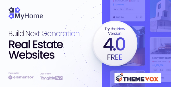 Welcome to MyHome 4.0 – the most innovative Real Estate WordPress Theme, designed to provide a better way of building and managing real estate websites. With over seven years of proven stability and a fresh 4.0 approach, MyHome combines the power of the Elementor page builder with industry expertise to help you create unique, powerful, fast, and captivating real estate websites.